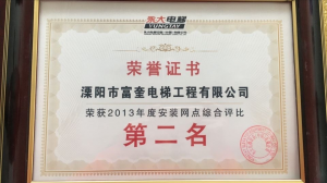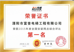 溧陽(yáng)市富奎電梯工程有限公司 溧陽(yáng)市富奎電梯工程有限公司是于二OO八年一月九日在原前身溧陽(yáng)市電梯工程公司基礎上成立的,是專(zhuān)業(yè)從事電梯銷(xiāo)售安裝維修、保養的企業(yè)。是國家質(zhì)監總局頒發(fā)的特種設備安裝、改造、維修A級安裝許可證單位。公司組織機構實(shí)行總經(jīng)理負責制,公司下設管理部、銷(xiāo)售部、安裝維修部、質(zhì)安部、財務(wù)部,公司另外設十二個(gè)分公司:四川分公司、江蘇分公司、上海分公司、浙江分公司、湖南分公司、遼寧分公司、山東分...