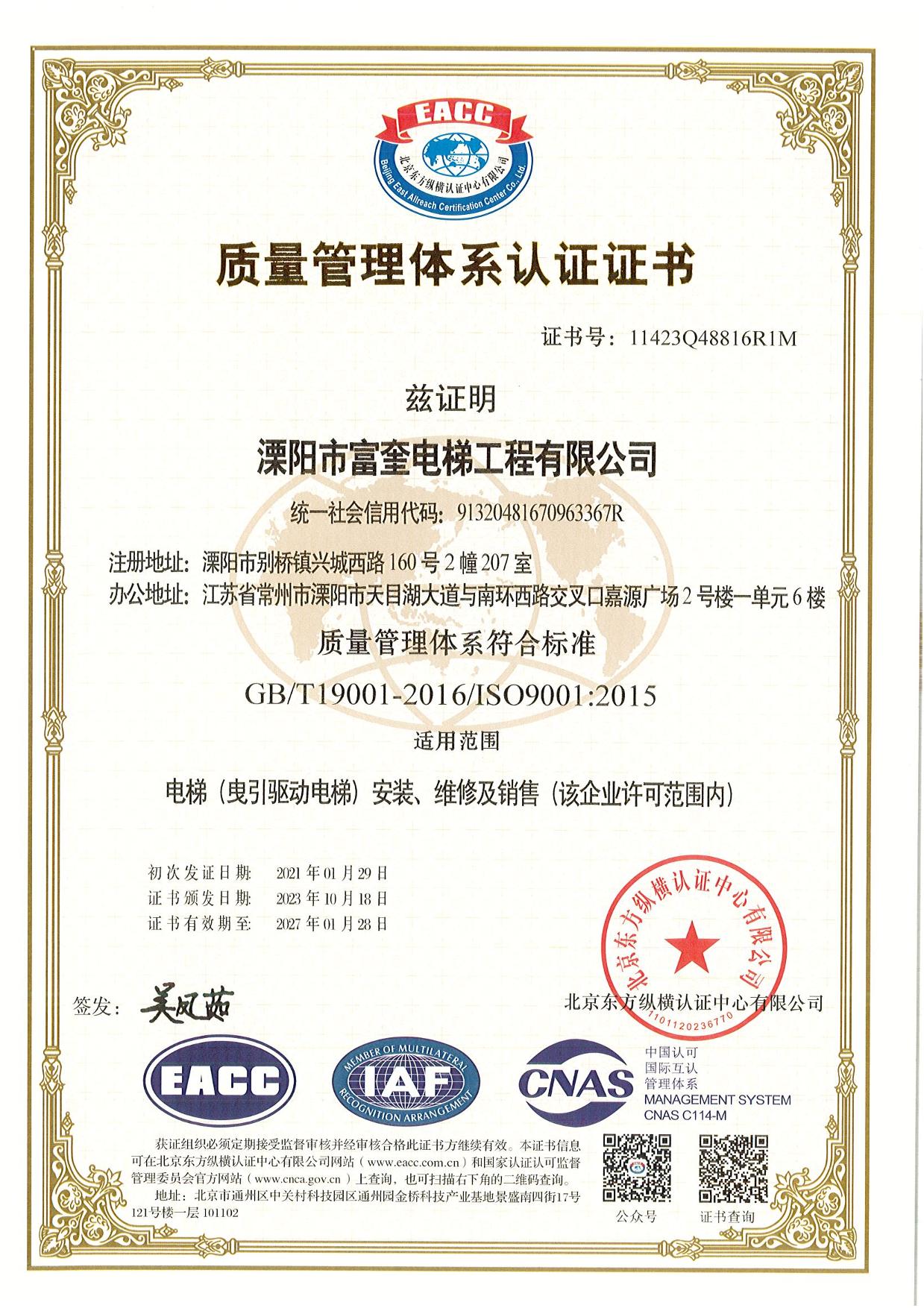 - 溧陽(yáng)市富奎電梯工程有限公司